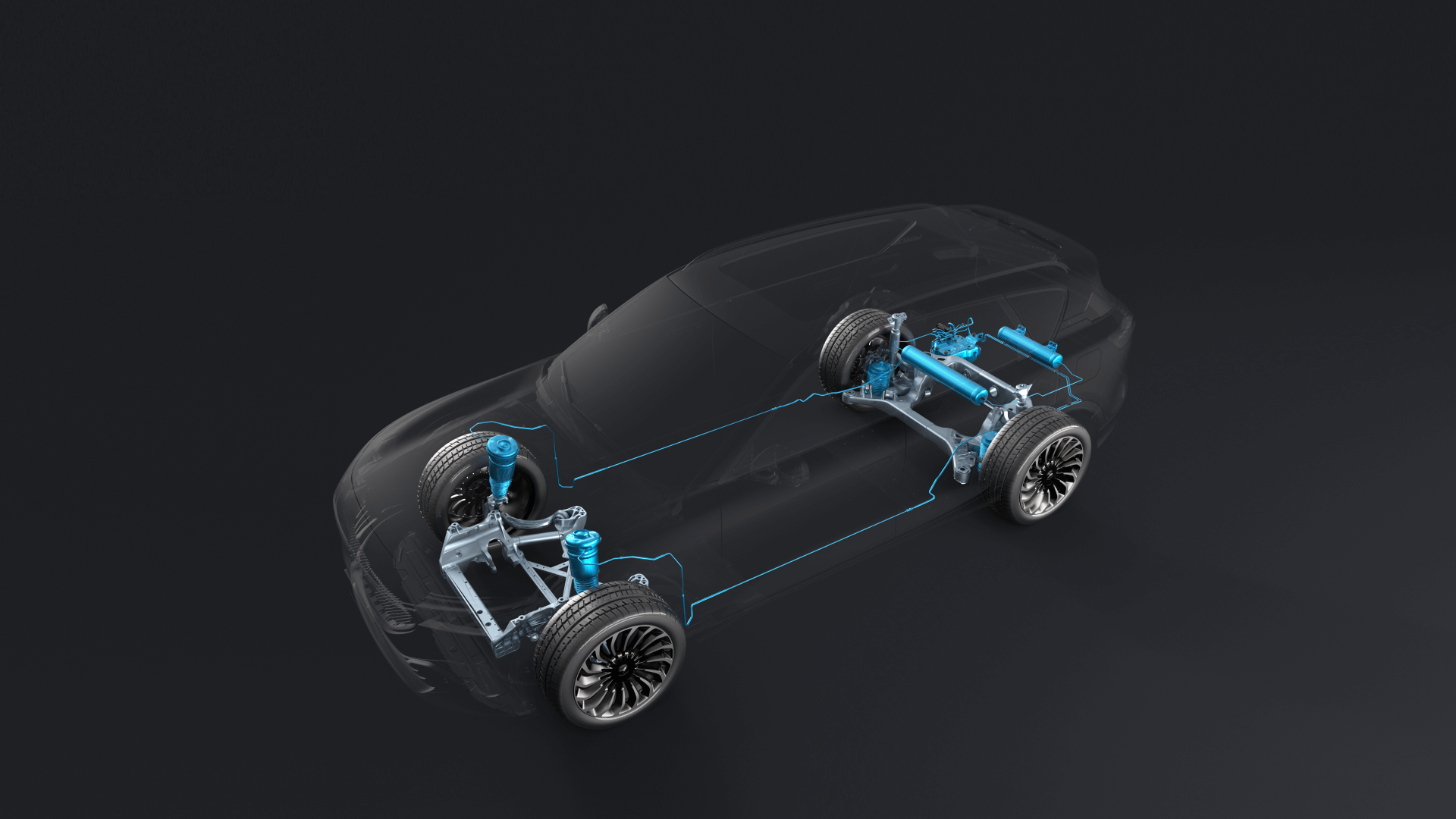 Dvojno sprednje in večtočkovno zadnje športno vzmetenje iz aluminijeve zlitine.